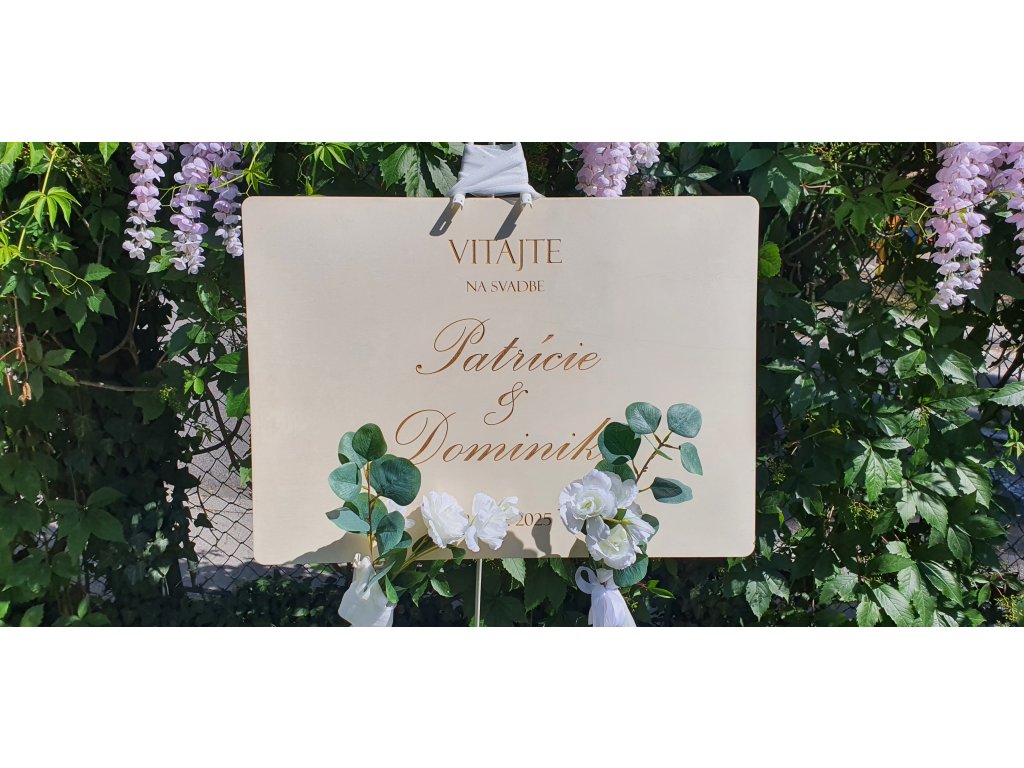 Privítajte svojich hostí jedinečným spôsobom! Naša drevená svadobná tabuľa je tým prvým detailom, ktorý vaši blízki uvidia pri príchode na váš veľký deň. Vďaka prírodnému vzhľadu topoľovej preglejky a precíznemu gravírovaniu pôsobí tabuľa elegantne, čisto a dokonale zapadne do svadby v štýle boho, rustic, greenery, ale aj do klasickej romantickej výzdoby.