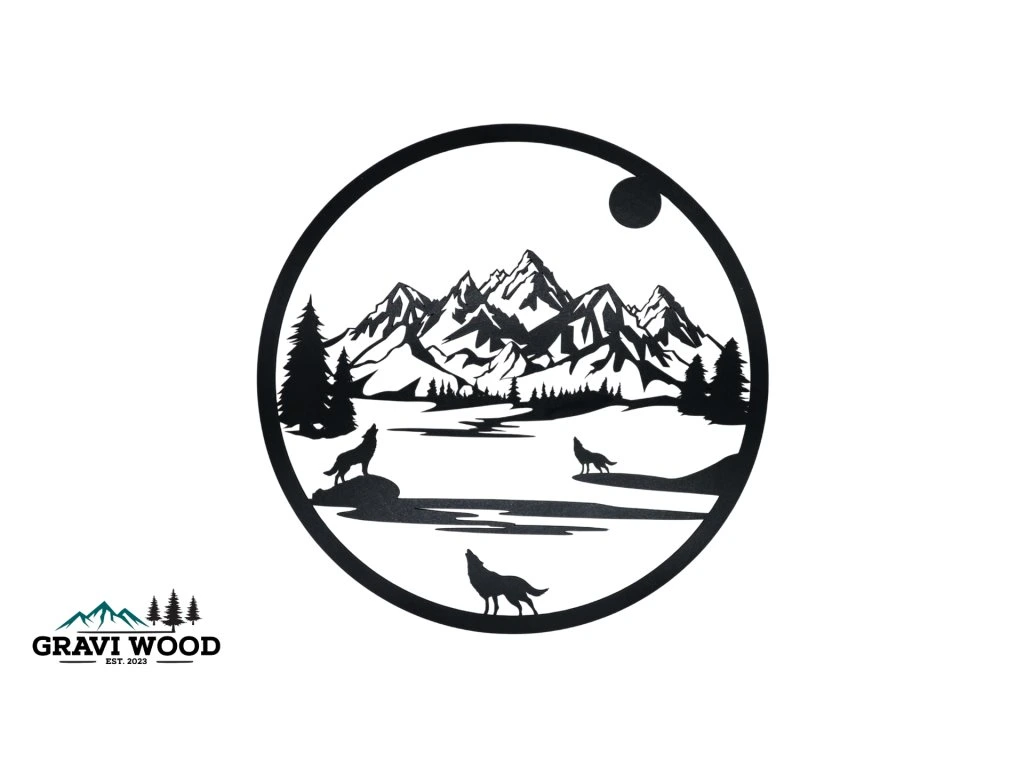 Vneste do svojho domova silu a slobodu nespútanej prírody. Tento detailne vyrezávaný obraz zachytáva atmosféru horskej noci, kde pod dohľadom mesiaca dominujú majestátni vlci. Je to ideálny doplnok pre milovníkov hôr, turistiky a zvieracej symboliky.