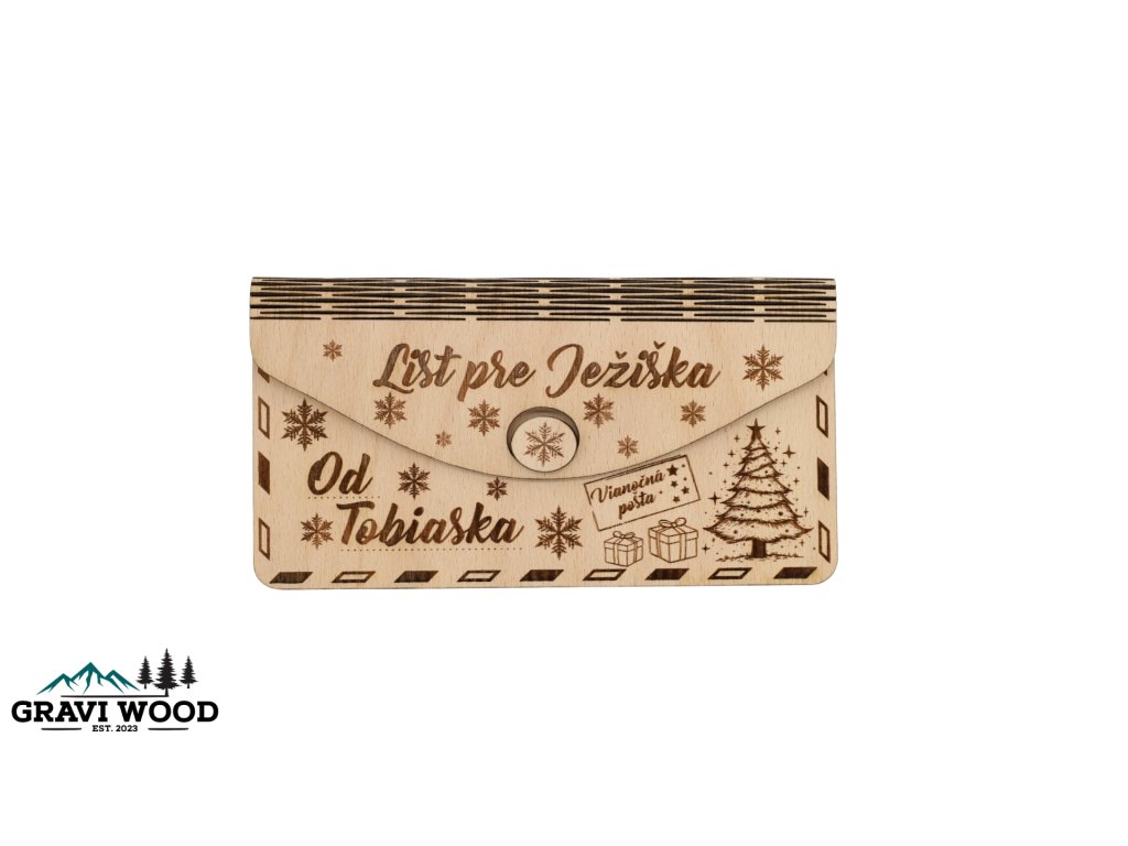 Urobte tohtoročné písanie listu Ježiškovi ešte kúzelnejším! Písanie listu je pre mnohé deti najočakávanejším momentom predvianočného obdobia. S našou originálnou drevenou obálkou sa tento magický rituál premení na nezabudnuteľnú tradíciu a krásnu rodinnú spomienku.