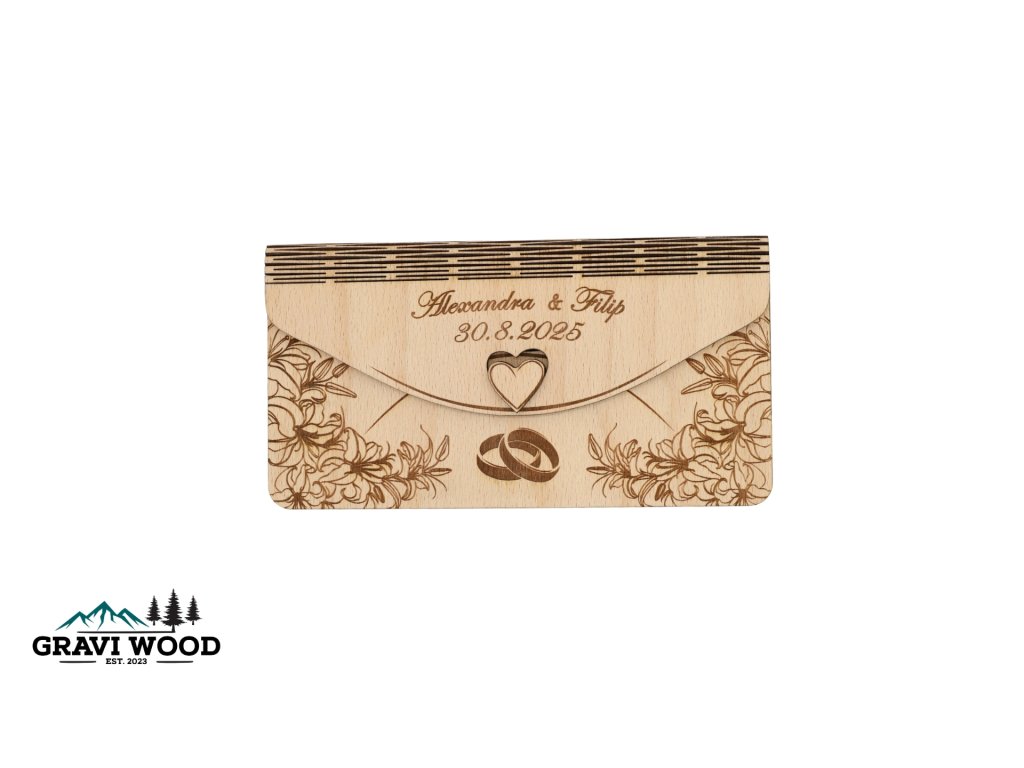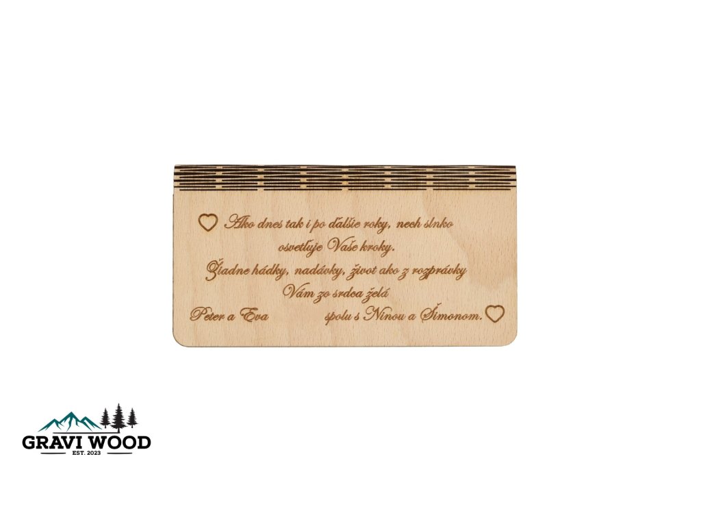 Drevená originálna personalizovaná obálka na peniaze ku gratulácií.